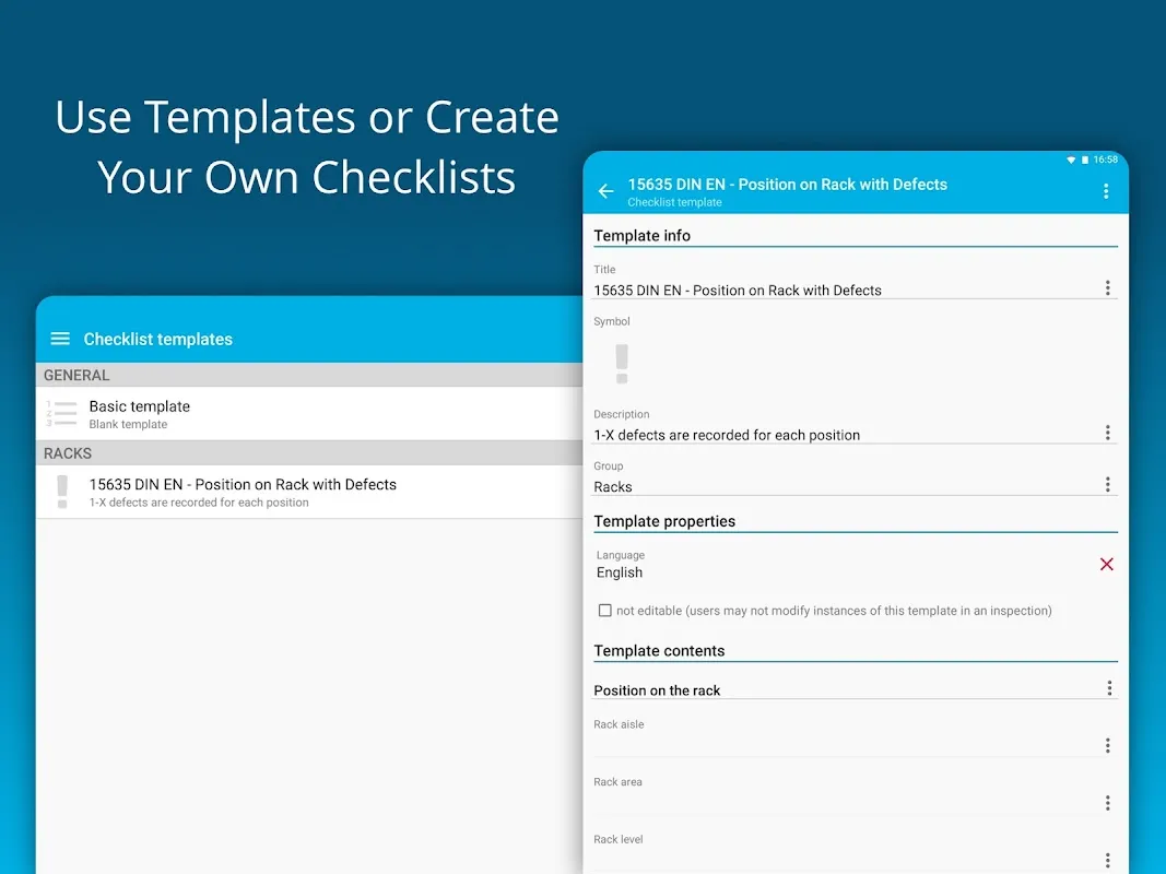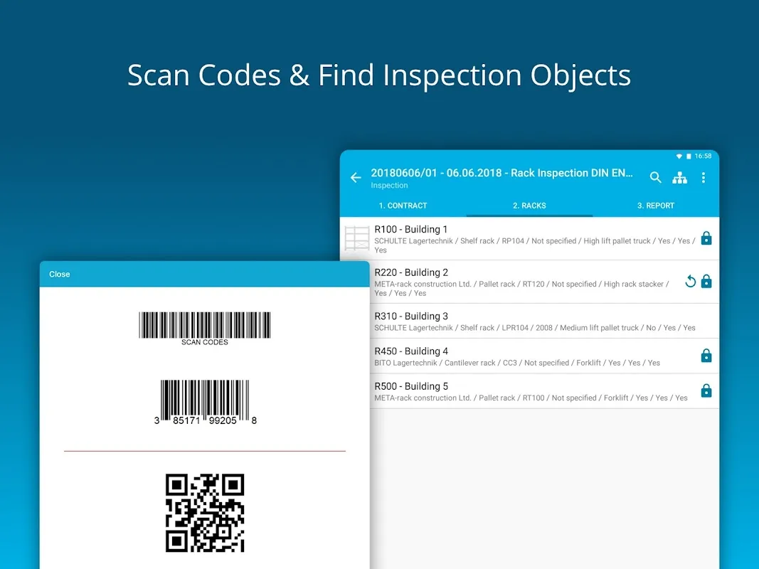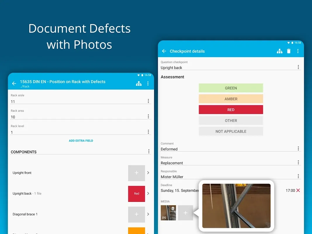 Keywords: rack inspection, EN 15635, warehouse safety, compliance software, inspection app