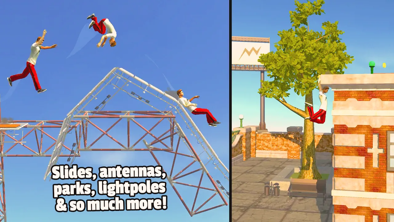 Keywords: parkour simulation, physics mobile game, character customization, offline runner, urban acrobatics