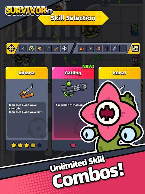 Keywords: Survivor.io, zombie survival, one-hand control, roguelite skills, stage difficulty