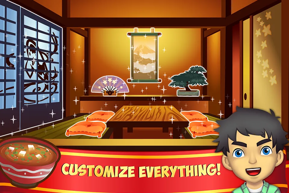 Be quick! Efficient service will help you earn coins, which you can use to unlock new ingredients and customize your shop. Expand your menu and grow your sushi empire!