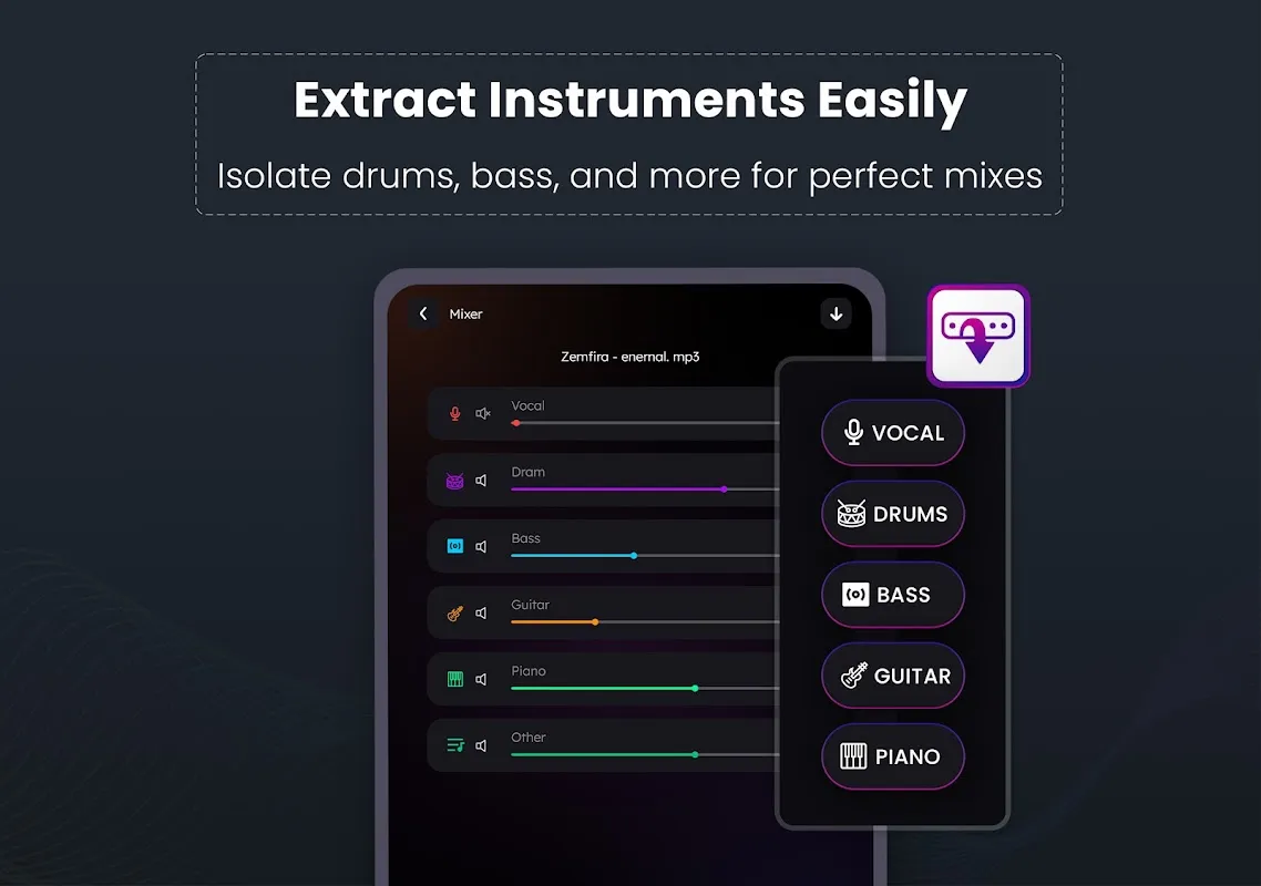 Keywords: vocal remover, karaoke maker, stem separator, music extractor, audio splitter