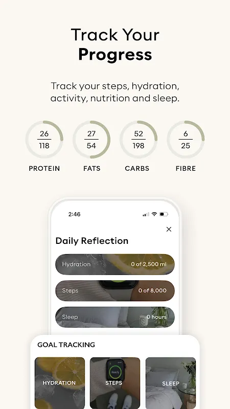 Keywords: womens fitness, personalized nutrition, home workouts, macro tracking, pilates app