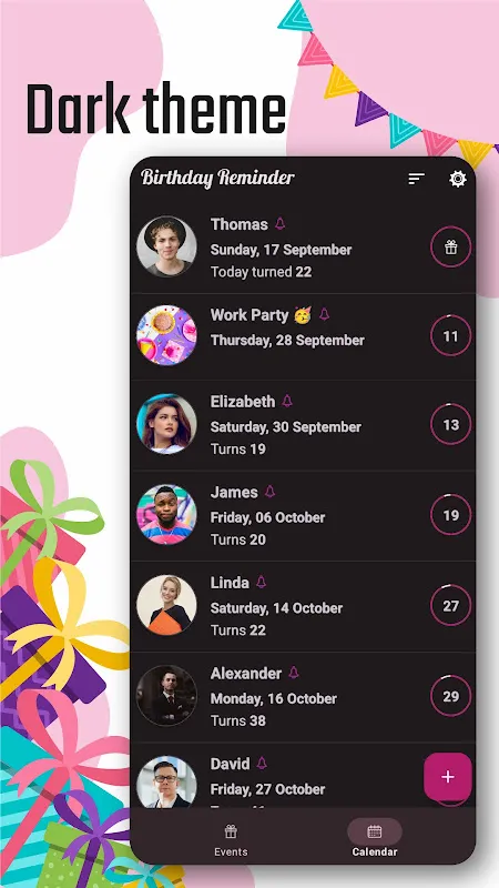 Friday 10:15 PM: Post-dinner drowsiness sets in. Dark mode activates automatically as I add my new neighbor's birthday. The zodiac symbol reveals shared astrological traits - potential friendship insights glowing softly in my dim living room. I set a "bake cookies" reminder for next week, already tasting chocolate chips.