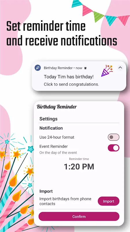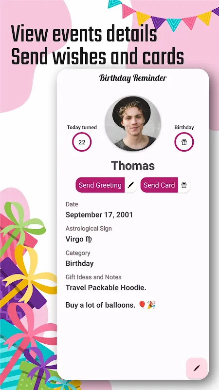 Keywords: birthday organizer, reminder app, contact importer, zodiac tracker, greeting cards
