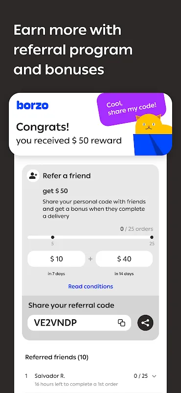 With Borzo, you get competitive pay, instant daily payouts, extra bonuses, and the chance to earn tips. There’s no limit to what you can make. The app is user-friendly, available in local languages, and packed with orders all day, so you can start earning right away.