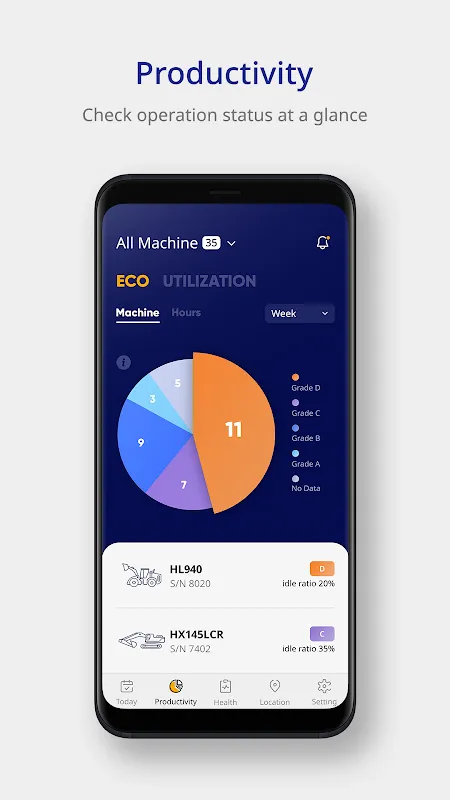 3. Productivity Insights: Gain valuable insights into equipment utilization with key metrics. Track the idle hour ratio, machine usage ratio, and work weight to identify opportunities for improving efficiency and reducing operational costs.