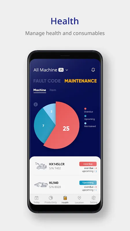 4. Health Monitoring: Proactively manage maintenance by checking the fault status of your equipment. Receive alerts and see when specific maintenance items are due for replacement, helping to prevent downtime and extend equipment lifespan.