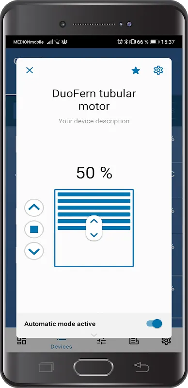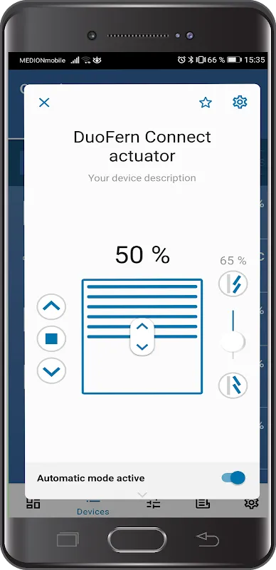 With the Rademacher App, seamlessly manage your DuoFern-enabled smart home devices right from your smartphone or tablet, whether you're at home or away. Gain instant access to your connected devices and predefined scenes with just a few taps. Check the status of your shutters, monitor your thermostat’s temperature settings, or verify if the bedroom light is still on—all at a glance.